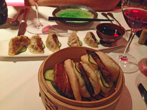 This is one of the bars. I approve of the brick, exposed ductwork, the periscope cupholder thing at the bar bar, and those studded chairs. Lovely and comfortable. Dear saloon owners: barstools need to be comfortable. If they are not, people will not linger and order more overpriced cocktails.